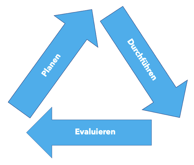 Da man selten ein einzelnes Training plant, sollte die Planung von Trainings als zirkuläre Aktivität angesehen werden. Nach der Durchführung ist vor der Evaluation, nach der Evaluation die nächste Planung usw. So kann man seine Trainings stetig optimieren.