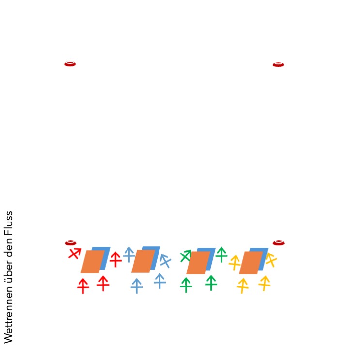 - Zwischen der Start- und der Ziellinie ist ein grosser Fluss mit Piranhas und Krokodilen. Berührt jemand vom Team den Fluss (bzw. den Boden zwischen Start- und Ziellinie), muss das Team nochmal von ganz vorne anfangen.